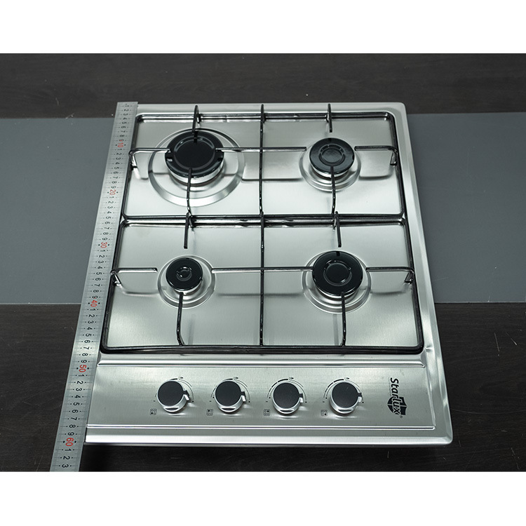 Cuisinière à gaz intégrée à 4 brûleurs professionnelle avec sécurité de la flamme et conception facile à entretenir, idéale pour les applications de cuisine commerciale.