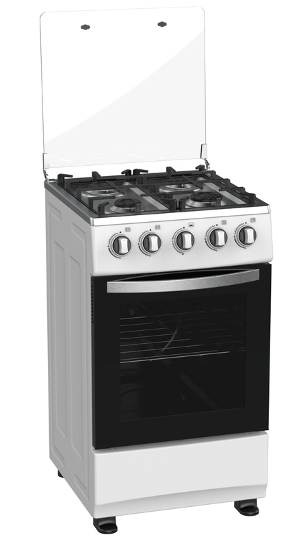 A: The gas oven has a capacity of 55L and offers a temperature range of **100°C to 250°C**, suitable for baking, roasting, and broiling.