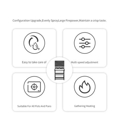 | Outer Plate: | 0.5mm SS | Burner: | Die-Cast Aluminum Seat , Enamel Fire Cap ,4*8mm IEF Iron Frame |