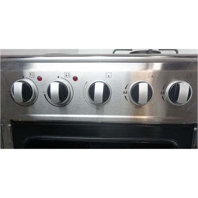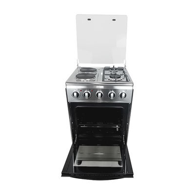 A: The gas oven has a capacity of 55L and offers a temperature range of **100°C to 250°C**, suitable for baking, roasting, and broiling.