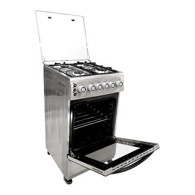 A: The oven is gas-powered, consistent with the stove’s overall gas-driven design, offering consistent heating for baking.